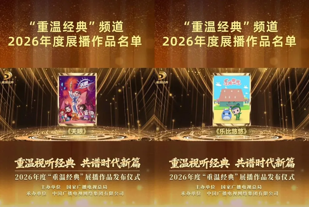 恭喜《天眼》《乐比悠悠》等作品入选2026年度“重温经典”展播!感谢这些可爱的人物形象,长久以来陪伴着观众成长,在时光中留下温暖的印记。此次入选,是对其艺术价值的肯定,也是对作品的经典延续。我们期盼未来涌现更多艺术精湛的精品力作,共同推动中国动漫产业繁荣发展。