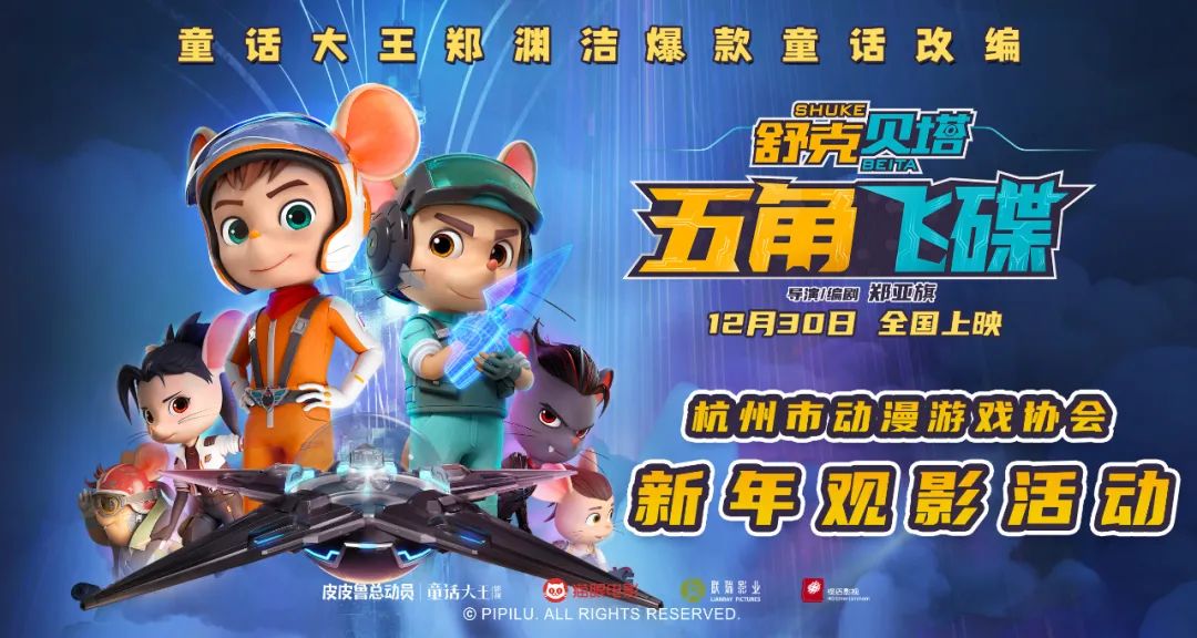 为助力杭产动画的崛起,激发动漫创作者的热情,同时感谢一年来会员单位的大力支持,杭州市动漫游戏协会组织新年观影系列活动——《舒克贝塔·五角飞碟》持续进行中。上周末协会组织的新年观影系列活动第一期火热开启。