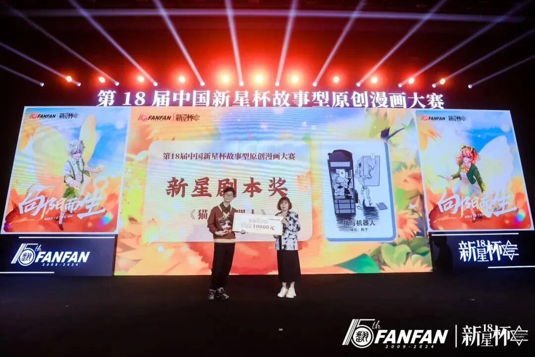 11月10日下午,由杭州市动漫游戏协会副会长单位翻翻动漫主办的第18届中国新星杯故事型原创漫画大赛颁奖典礼(下简称“新星杯”)在杭州市余杭区良渚街道的天荟未来之光·光剧院盛大举行。