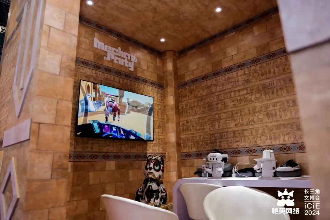 展台上还特别设置有VR互动体验区。《MechaParty》是恺英网络的自研机甲对战类VR游戏,游戏已上线海外地区PlayStation、Steam、Metaquest平台。这款游戏用独特的座舱式玩法有效的解决了3DVR游戏的眩晕问题,给现场观众带来了一场科幻元素叠满又很舒适的沉浸之旅,玩家可以穿戴VR设备,化身为机甲战士,与朋友或陌生人进行2v2实战。这种新颖的互动方式吸引了大量观众驻足体验,感受未来科技的魅力。