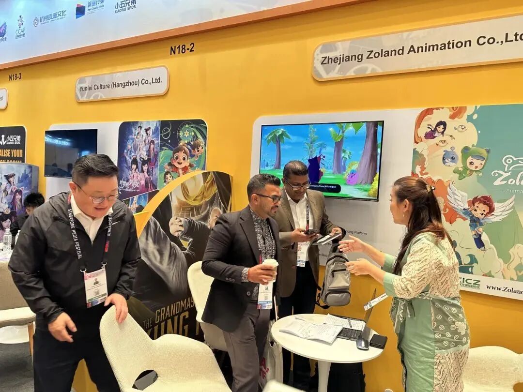 在本届ATF上,不仅展示了《乐比悠悠》《天眼归来》等经典原创动画作品,还推出了《苏东坡与杭州的故事》《钱王传奇》等富含中国优秀传统文化元素的动漫新番,以及“Zoland海外发行平台”代理的数十部动漫视听数字内容,吸引到众多不同国家买家进行洽谈,不断拓展业务范畴。其中,斯里兰卡客户对中南卡通原创和代理动画作品及其衍生产品表达浓厚兴趣,双方就合作清单进行了详尽沟通;为AI训练采购内容的美国客户则对中南卡通原创内容库及其代理的国内外动画作品表达合作意愿。