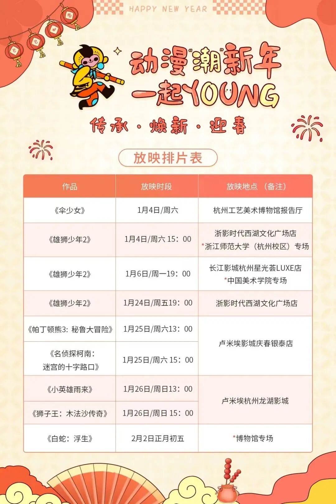 本次开展的“动漫‘潮’新年·一起YOUNG”活动作为以往“动漫迎新年”活动的升级版,不仅将开展系列动画影片观影活动,还将充分植入融合历史经典产业以及传统年俗文化等元素,形式更新颖、内容更丰富。